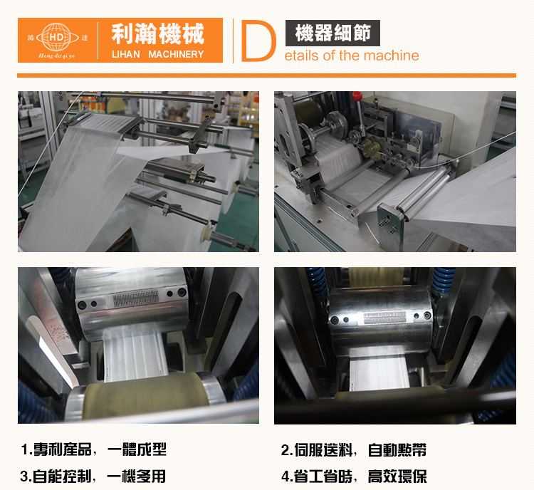 “鴻達牌”一拖二平面口罩外耳連線機,是為生產高端口罩的理想設備,設備從原料進入到成品輸出,全程自動作業,減少口罩在生產過程人體的接觸,從而輕松達到行業檢測標準,提高產品的環保中客戶而精研出來的,在產能方面達到較高的生產量; 該機是三臺設備組成,即平面口罩本體機一臺,外耳帶設備兩臺,通過程序控制,將口罩本體自動傳送到耳帶焊接設備上,從而達到全自動化作業,大限度的降底了人工成本。