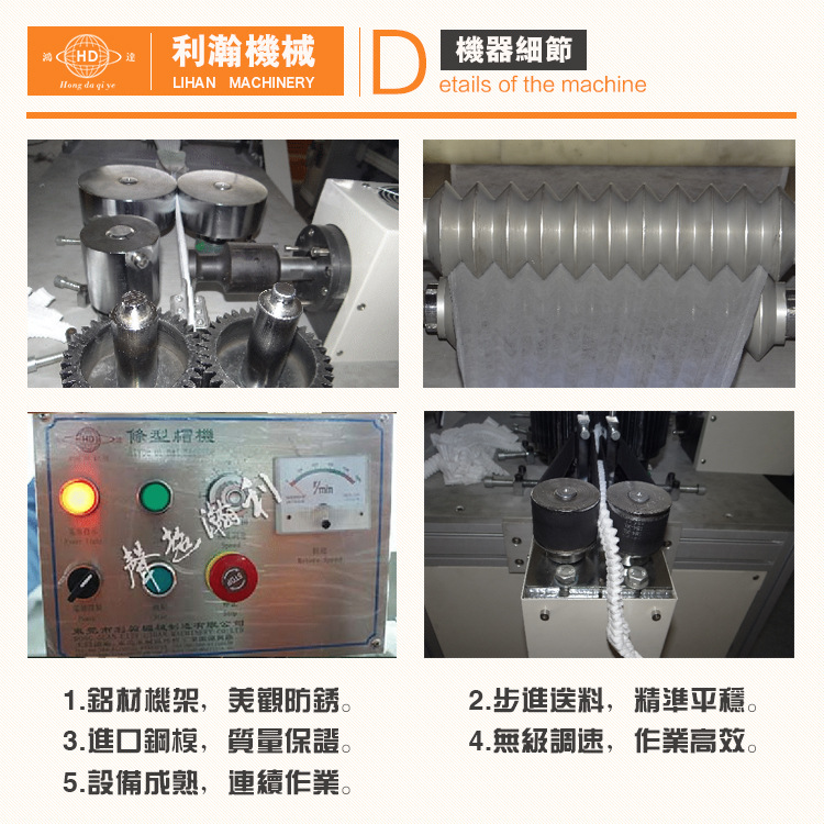產品裝備及特色:本機為全主動頭帽(條形)專用機器,從進料、鬆緊帶進料、折疊、熔合、堵截皆為主動化,制品搜集文本操控。操作簡易,歡迎來鞋套樣品訂貨機器。機器特性: