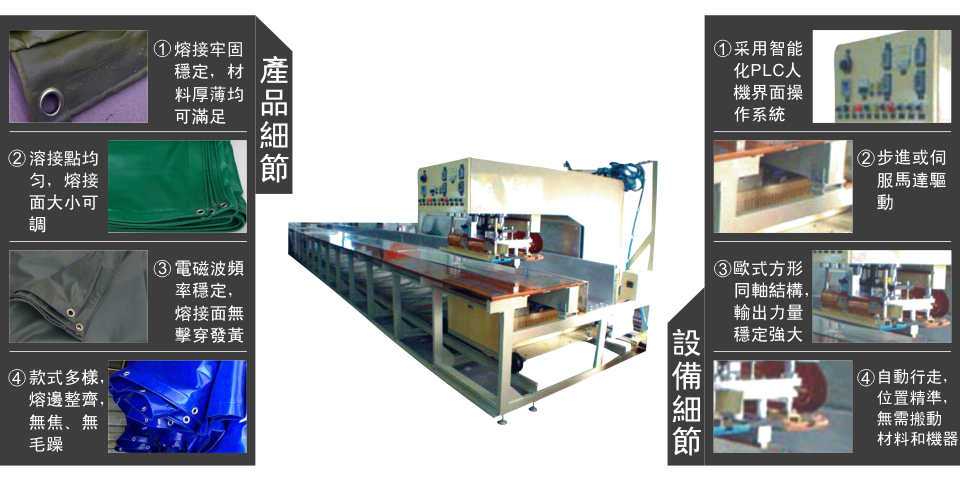 自動滑動連續(xù)式高周波膜結(jié)構(gòu)焊接機的特點: