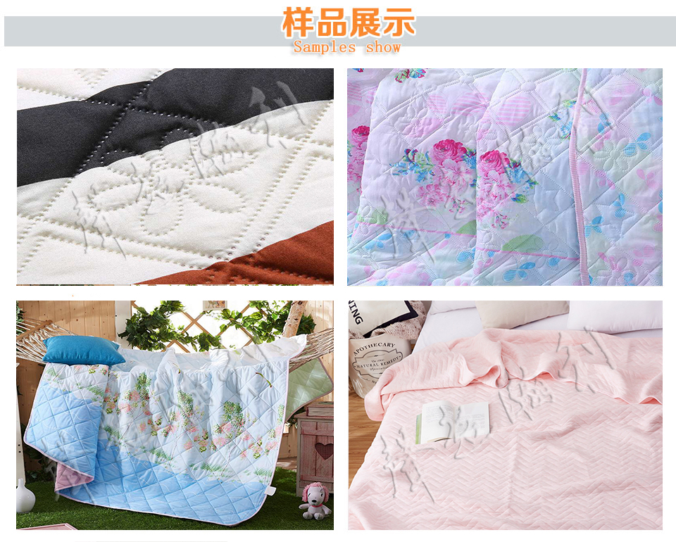 利瀚企業(yè)是較早將超聲波工藝應用與布輔料行業(yè),為應市場需求,公司新開發(fā)的鴻達牌全自動夏涼被成型機,該機通過程序控制,利用超聲波無線縫合的工藝,將生產(chǎn)夏涼被所需的整卷原材料(上下面料+噴膠棉或蓬松棉)時行自動復合,自動切片,自動包四邊,整個流程設計合理,運行順暢,效率高;花形可根據(jù)客戶產(chǎn)品而定,復合立體感強,壓紋清晰結實等特點,該機是目前超聲波制作夏涼被的全自動化設備,深受客戶之喜愛.