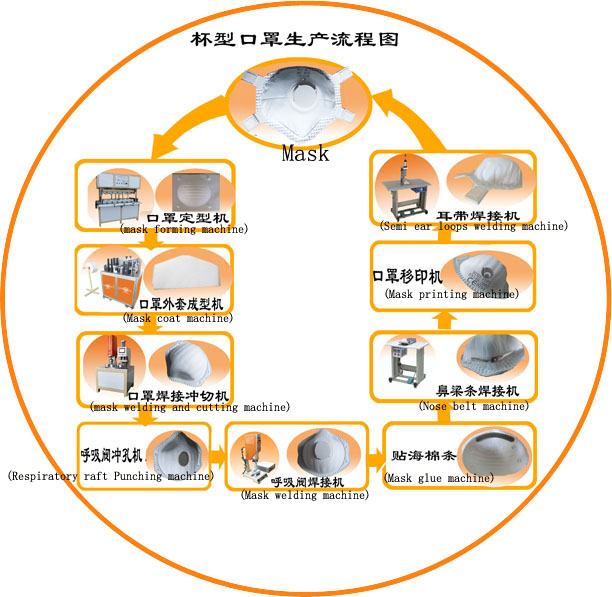 杯型口罩生產示意圖: