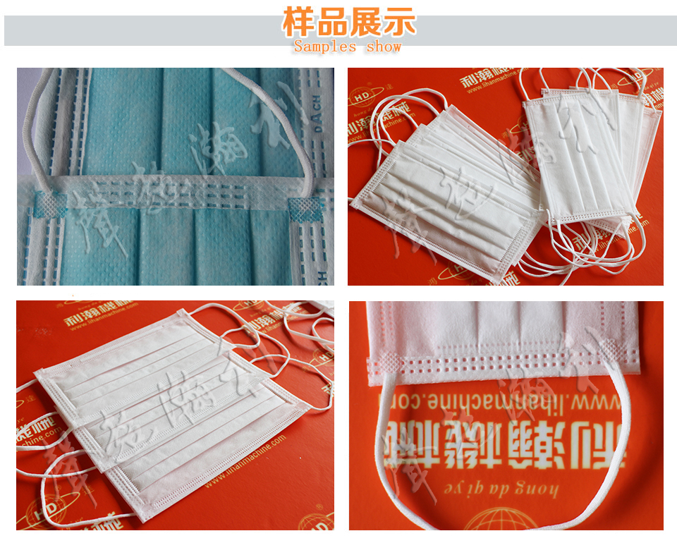 "鴻達"牌平面外耳帶口罩機(一拖三), 是利瀚機械精研出平面口罩系列一款設備, 由四臺設備進行連線組成,分別有: 一臺本體制造機和三臺口罩外耳包邊焊接機組成, 該機從原料進入, 自動打片, 自動移位, 自動分列, 自動包邊上耳帶, 到成品輸出, 全自動化制作, 一機完成口罩的數道生產工藝, 減少口罩在生產過程人體的接觸, 從而容易達到行業檢測標準.
