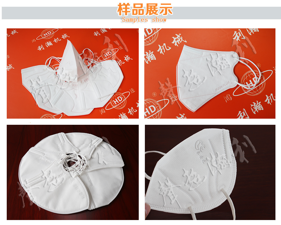 “鴻達牌”全自動高速折疊口罩機,是利用程序控制完成自動化生產,從原材料3~6層,到出成品,自動化完成作業,其中包含制作工序有埋鼻梁條、折疊成型和耳帶焊接;設備通過伺服送料,定位系統與每個制作工位的配合,高質的生產出折疊口罩;為了應付市場需求,根據產品可以對模具進行調整,生產出各式各樣的折疊式口罩; 同時可根據客戶的要求添加視覺檢測以及口罩包裝機。